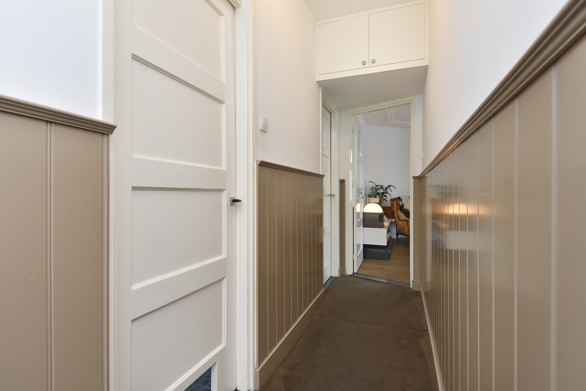 Portiektrap naar de eerste etage; entree woning; ruime hal met vaste kast; net geheel betegeld toilet; ruime woonkamer met keurige nette open keuken met ... Lees meer