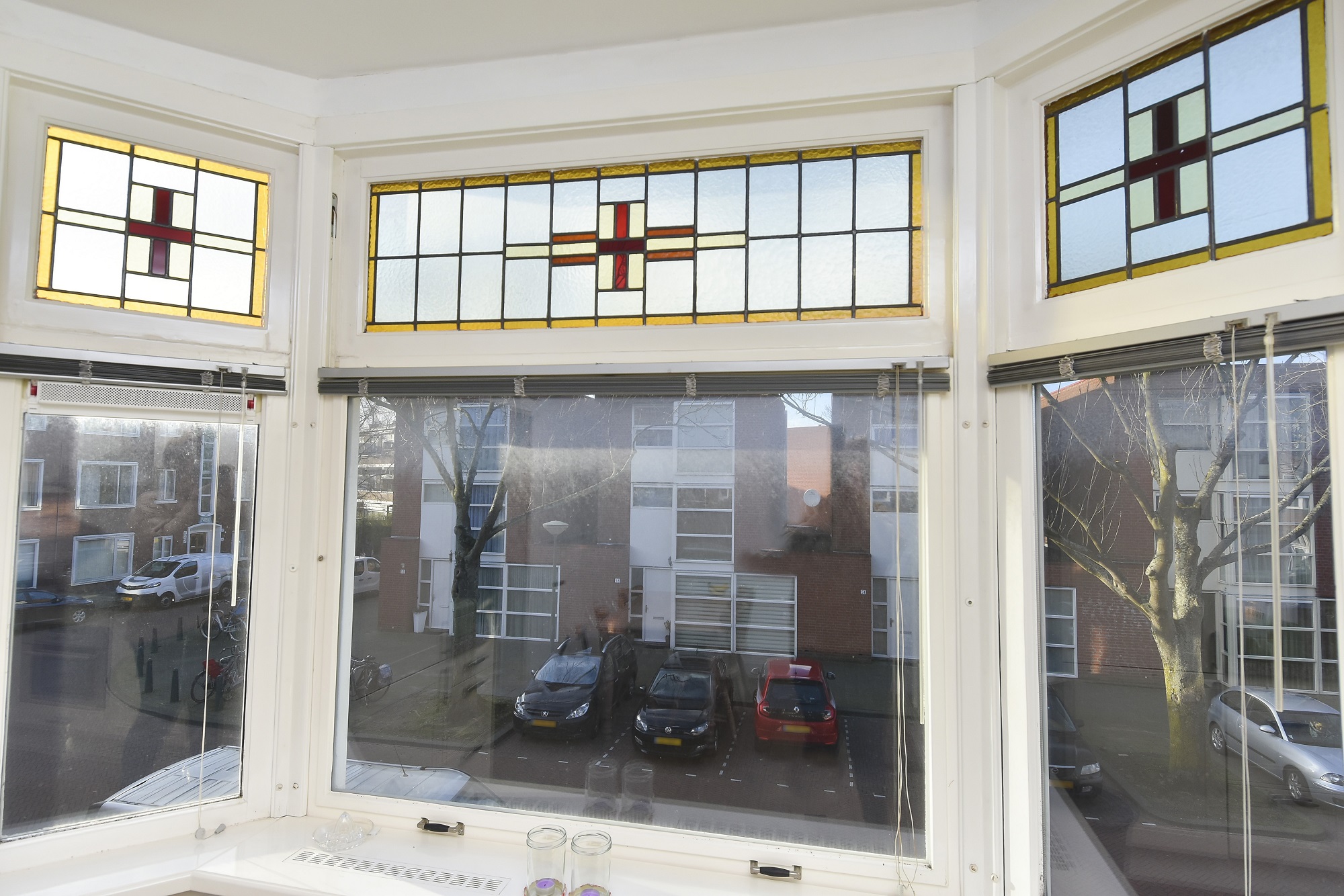 Volop glas-in-lood, paneeldeuren en ornamenten nog aanwezig! Dubbel glas en waar glas-in-lood is geplaatst voorzetramen. Eigen grond. Centrale verwarming Intergas 2018. Actieve VVE 135,-/maand. Winkelcentrum Almeloplein vlak om de hoek! Aanvaarding per direct.