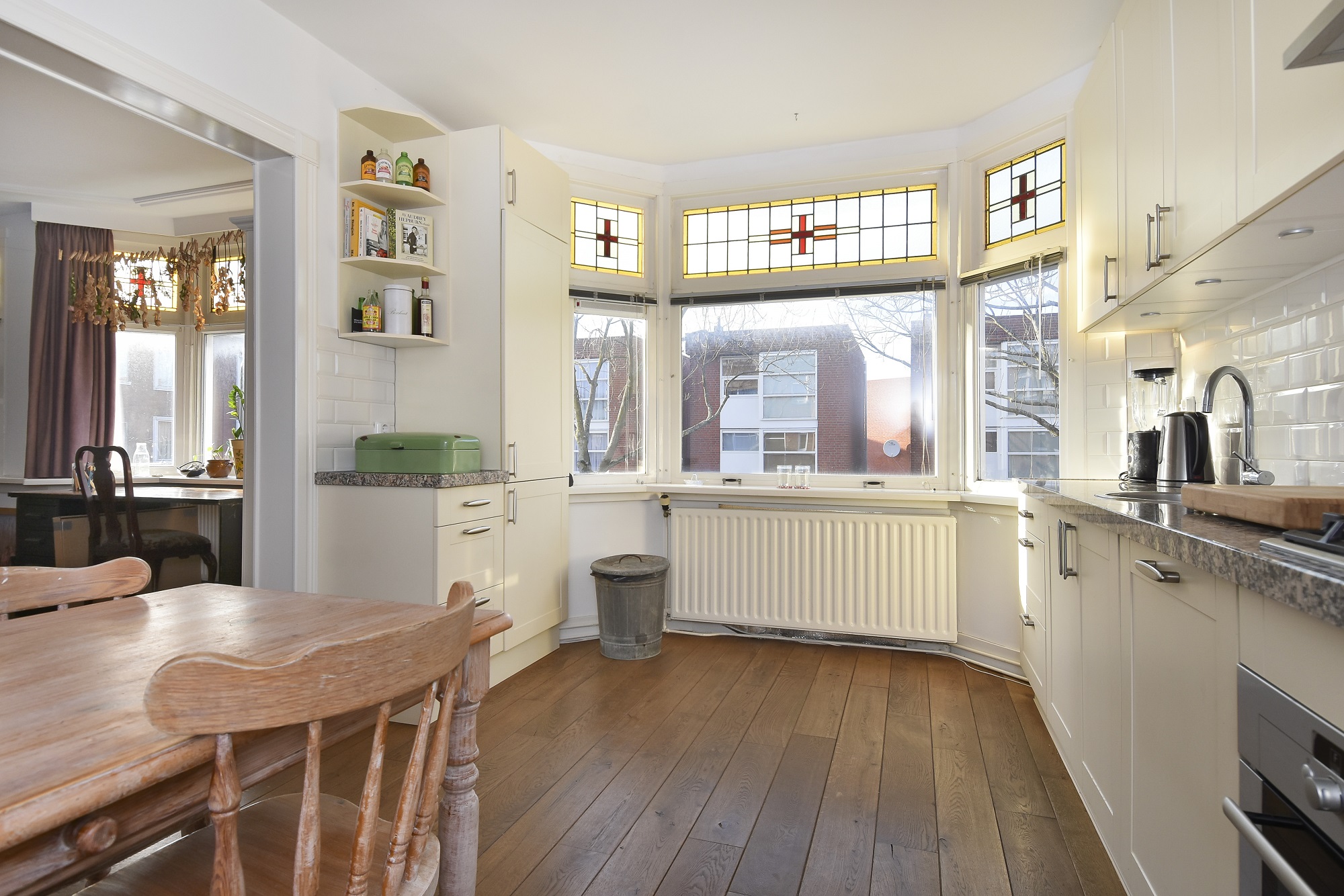 Schitterend sfeervol riant 4-kamer appartement op de eerste etage gelegen! Extra breed appartement met twee stijlvolle erkers aan de voorzijde!