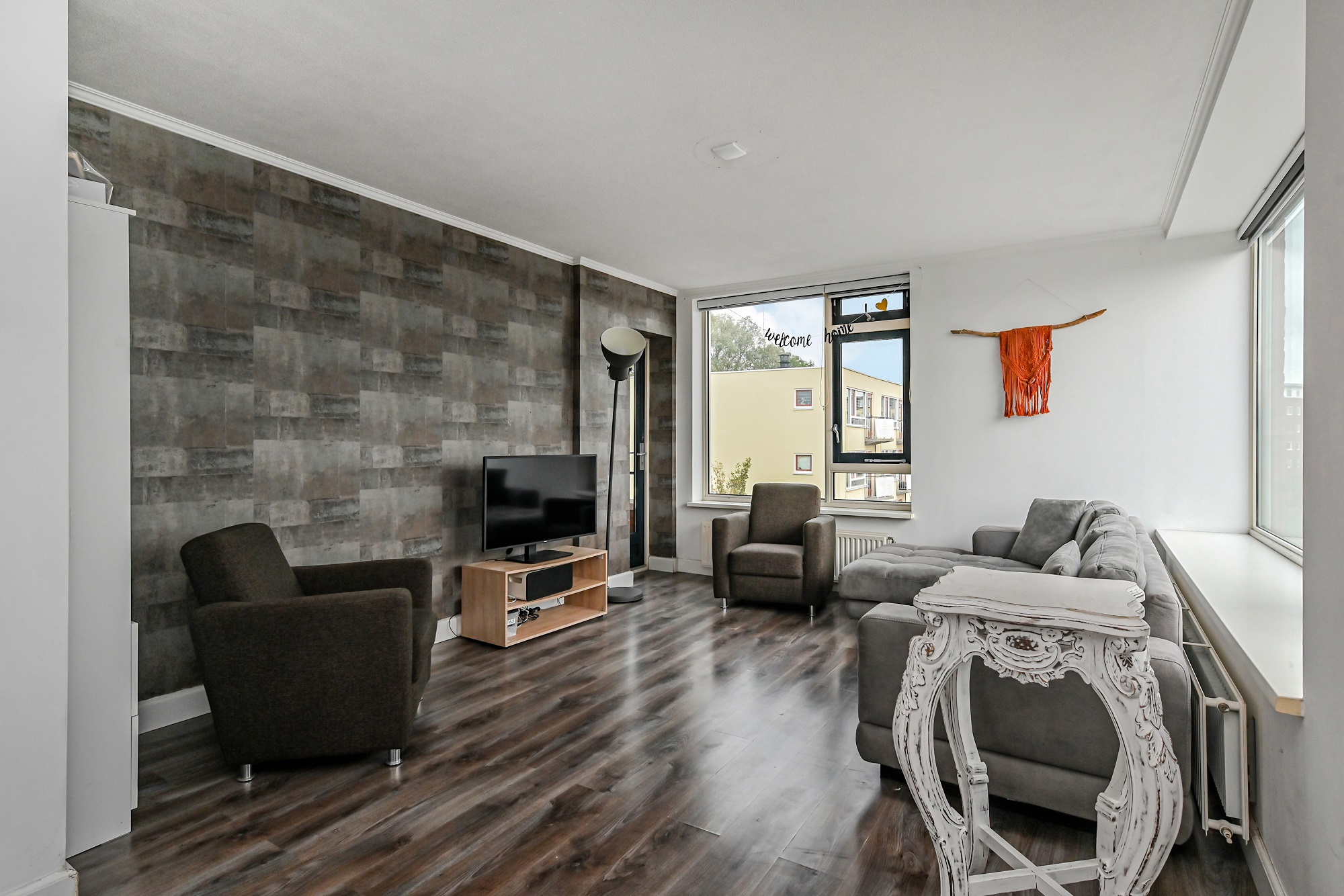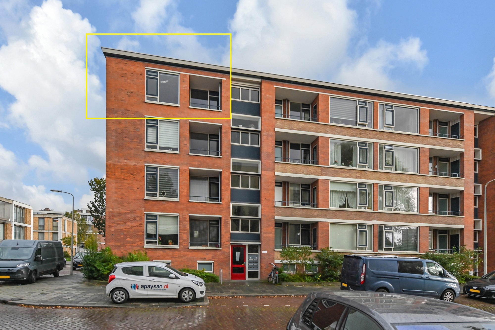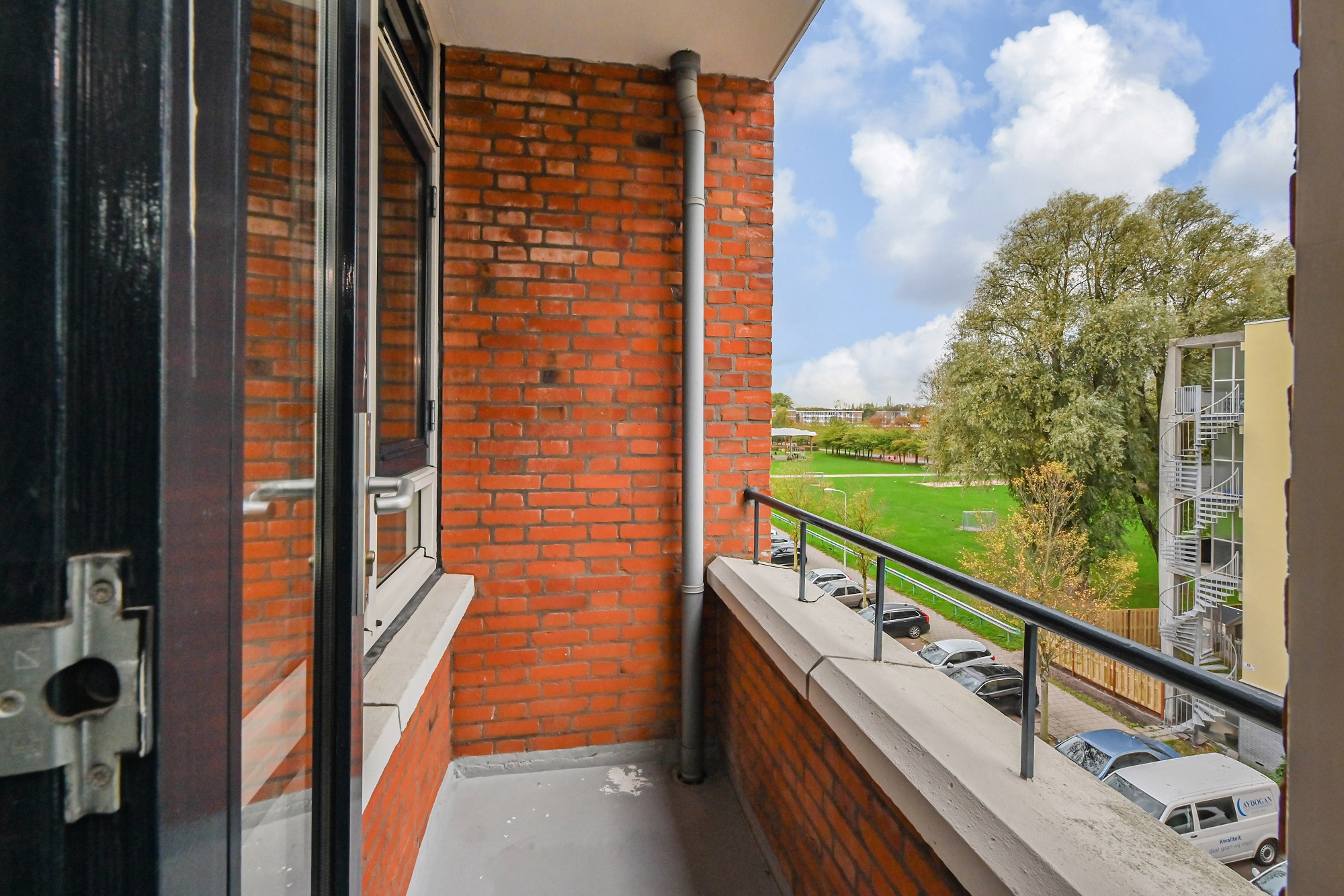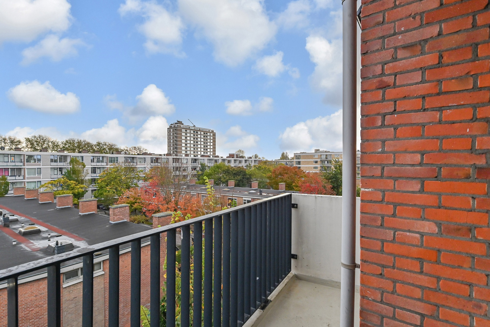 Op een hoek gelegen drie/vierkamer topetage met een voor - en achterbalkon en een zeer ruime berging in de onderbouw! Door de hoekligging extra veel lichtinval! Prachtig vrij uitzicht!