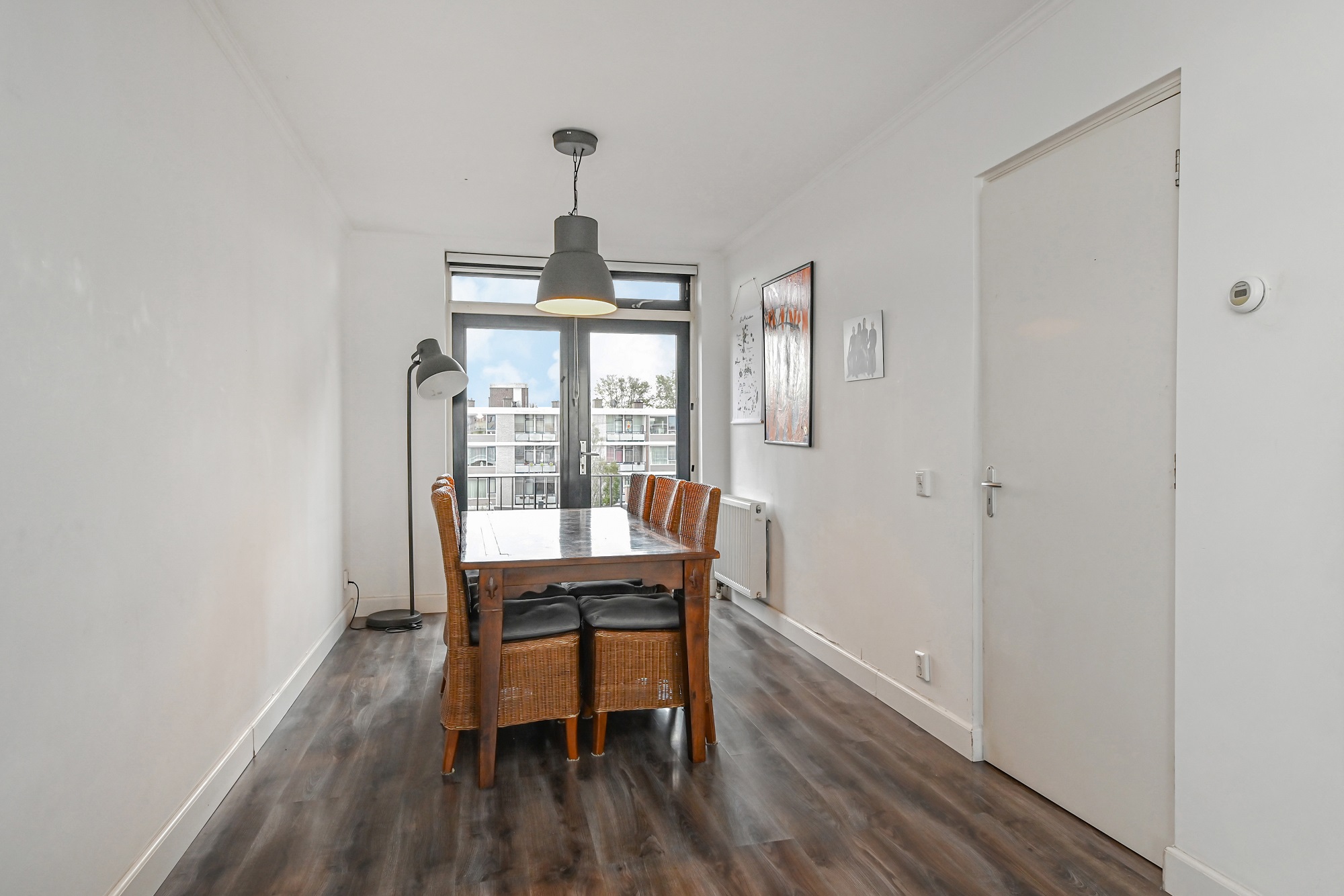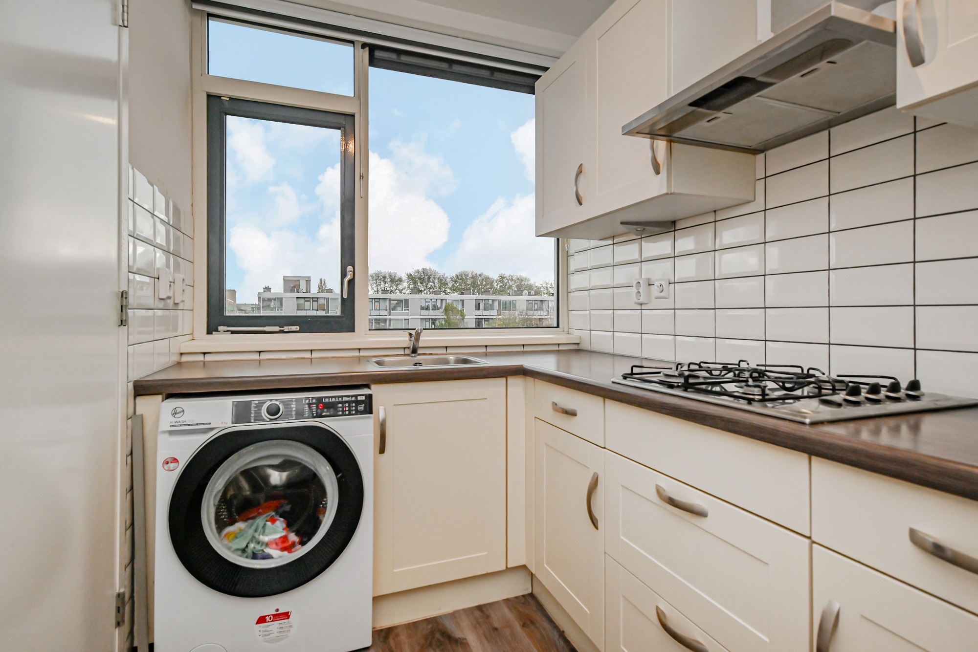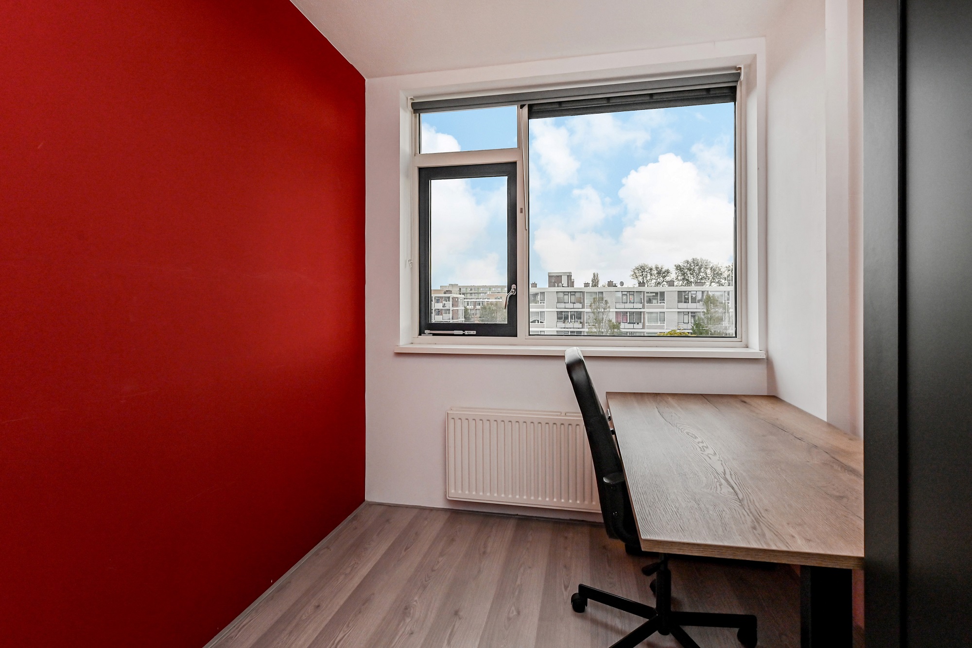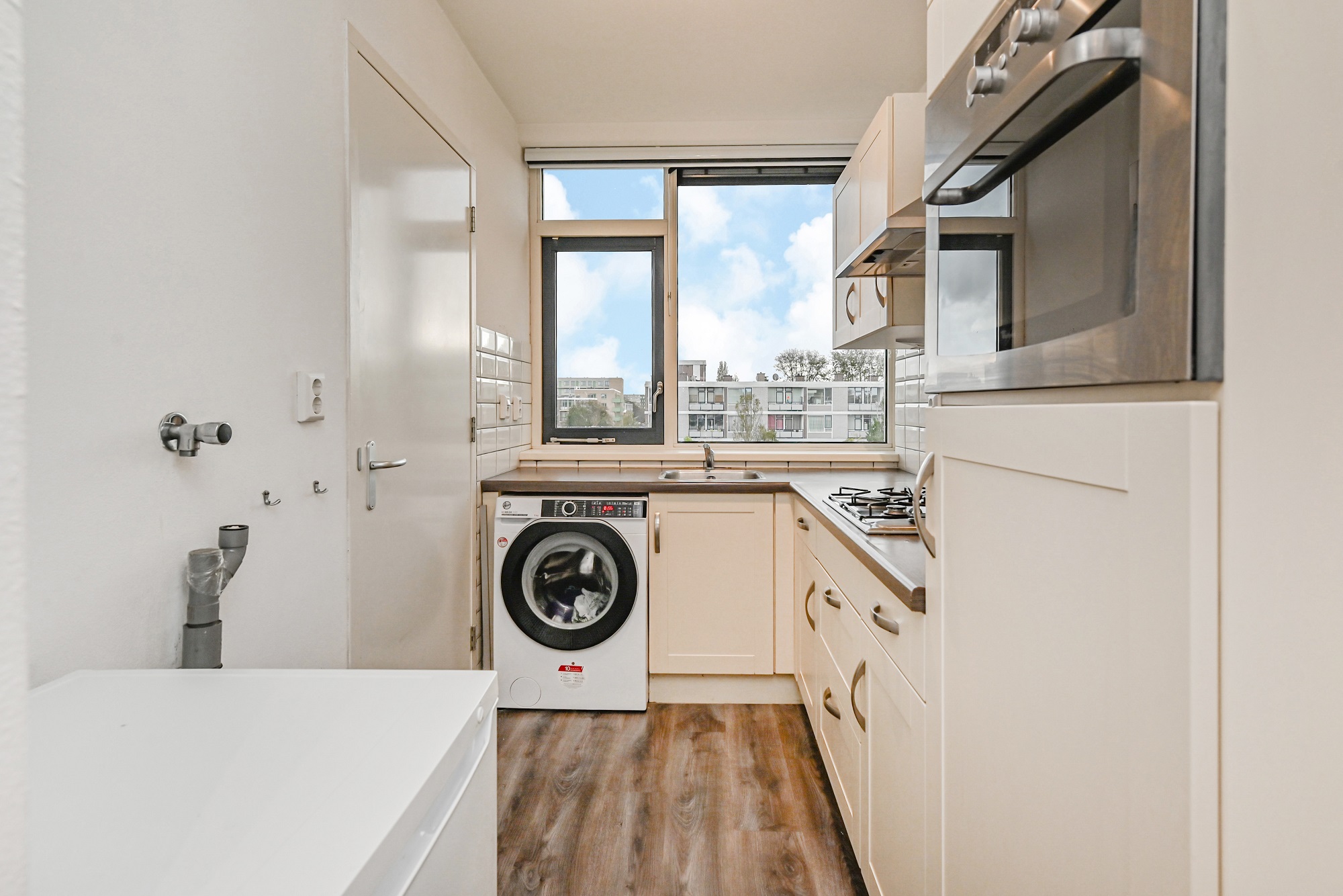 Op een hoek gelegen drie/vierkamer topetage met een voor - en achterbalkon en een zeer ruime berging in de onderbouw! Door de hoekligging extra veel lichtinval! Prachtig vrij uitzicht!