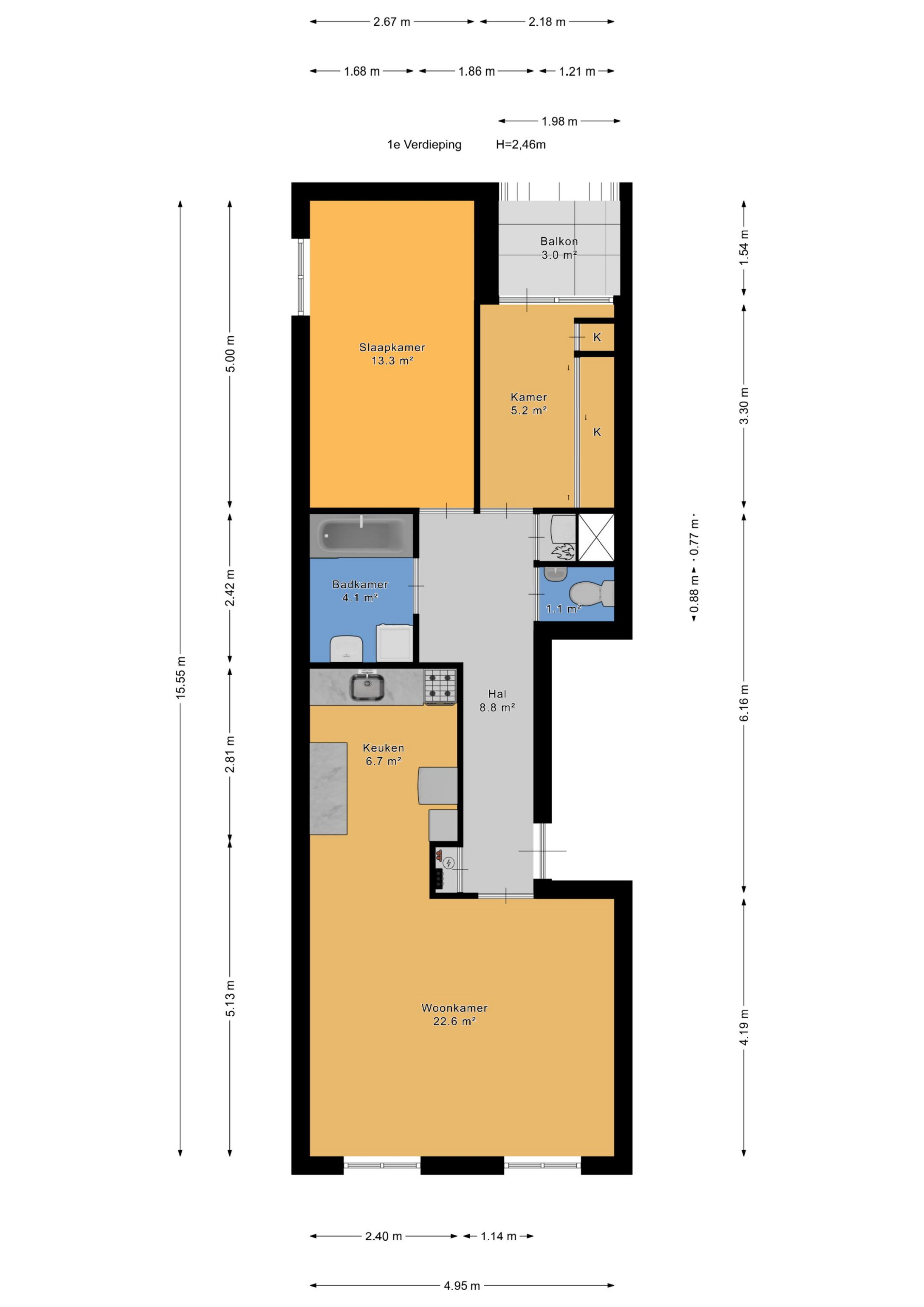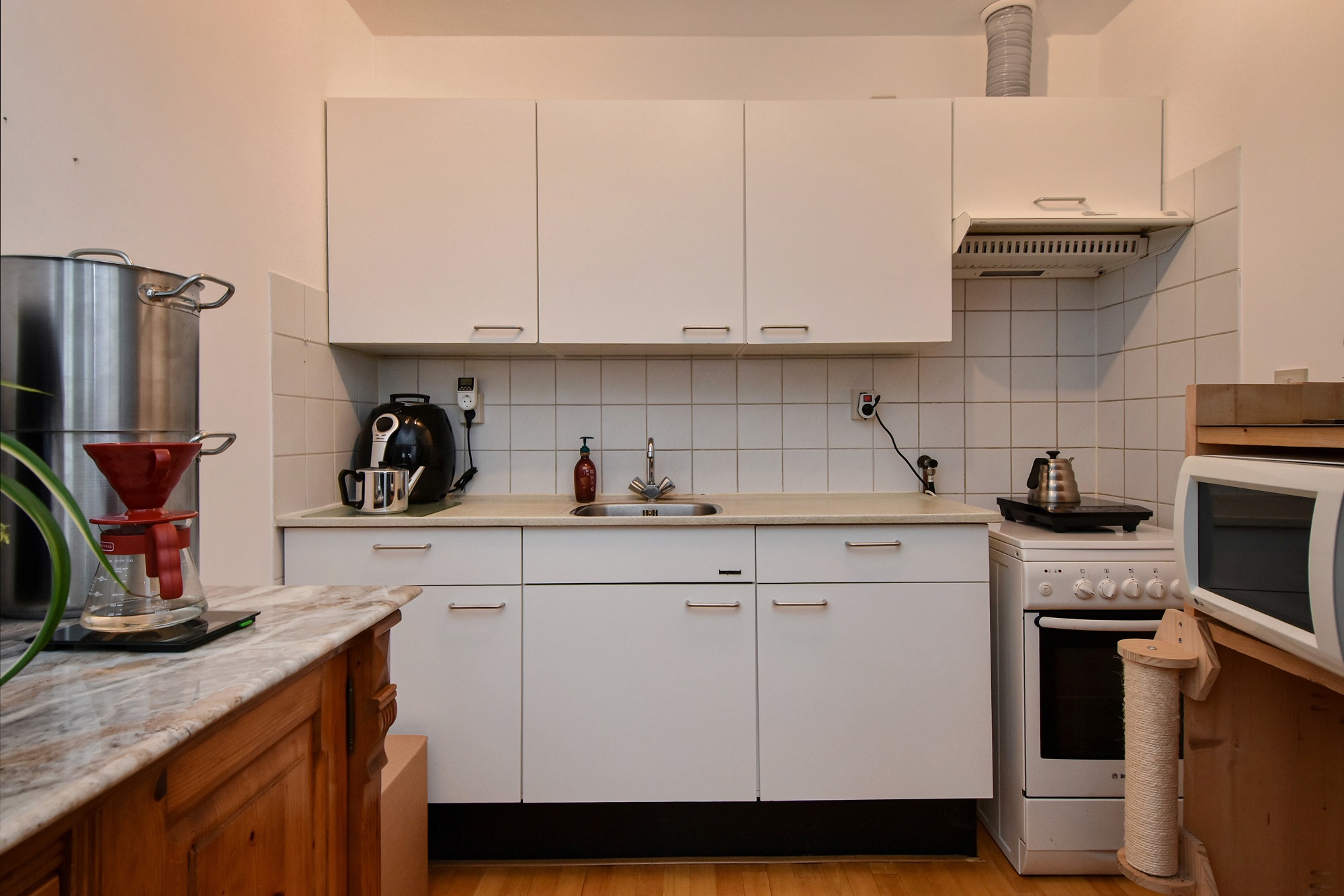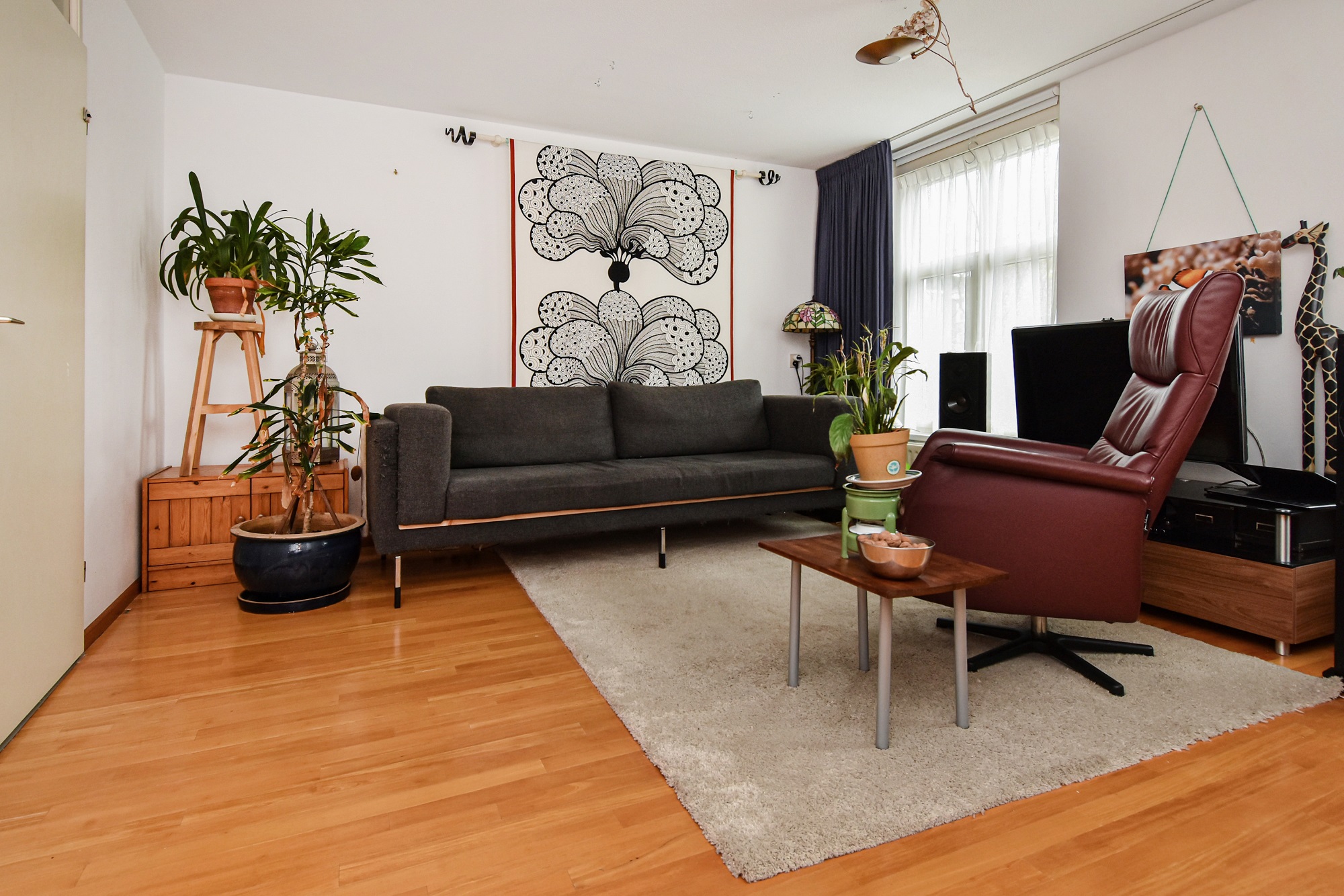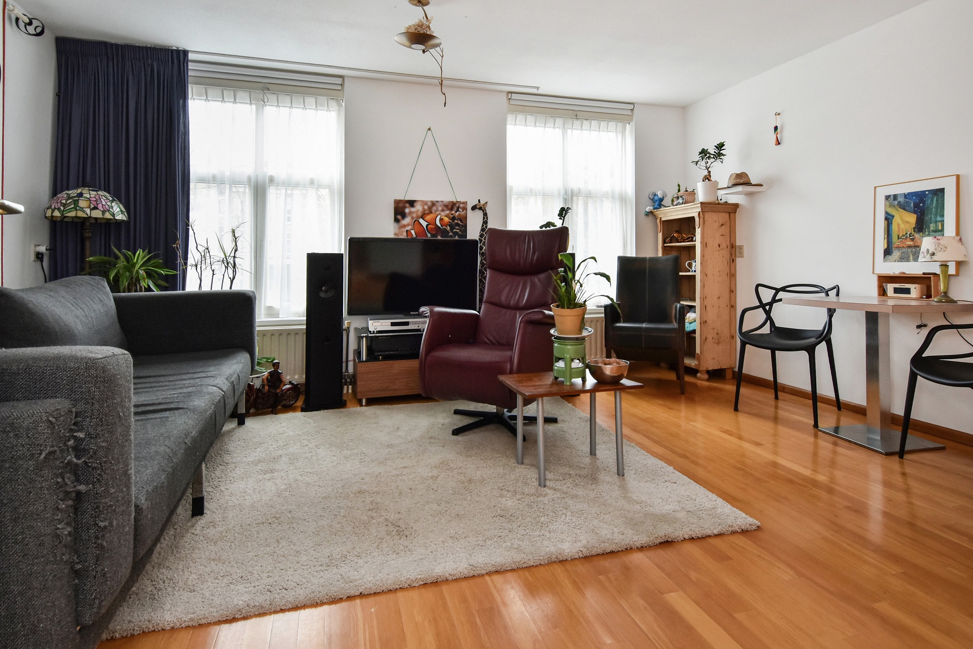 Afgesloten gemeenschappelijke entree op de begane grond met brievenbussen en intercominstallatie; trap naar de eerste etage; entree woning; hal met meterkast; toilet met fonteintje; woonkamer met prachtig vrij uitzicht over de kade; keuken met keukenblok met onder - en bovenkasten, gasfornuis/oven en afzuigkap; ruime slaapkamer aan de achterzijde; slaapkamer aan de achterzijde met wandkast; inpandig balkon aan de achterzijde; ruime berging aan de achterzijde. (Volledige afmetingen op de laatste foto!)
