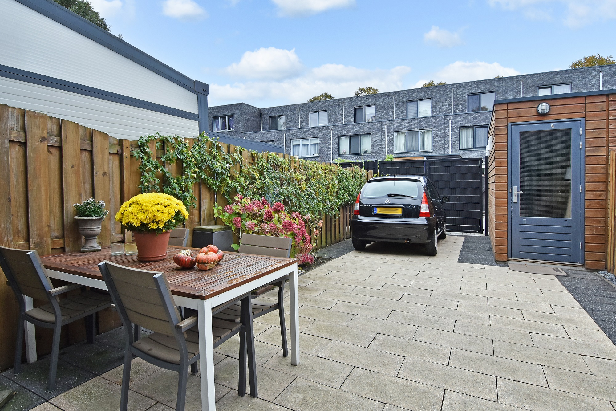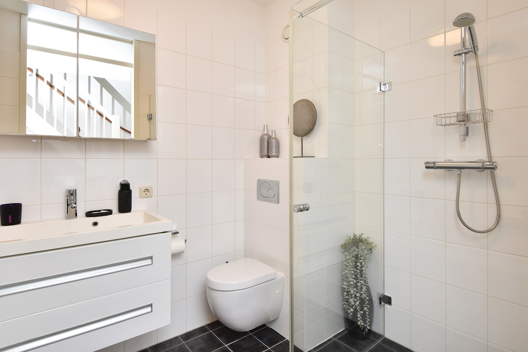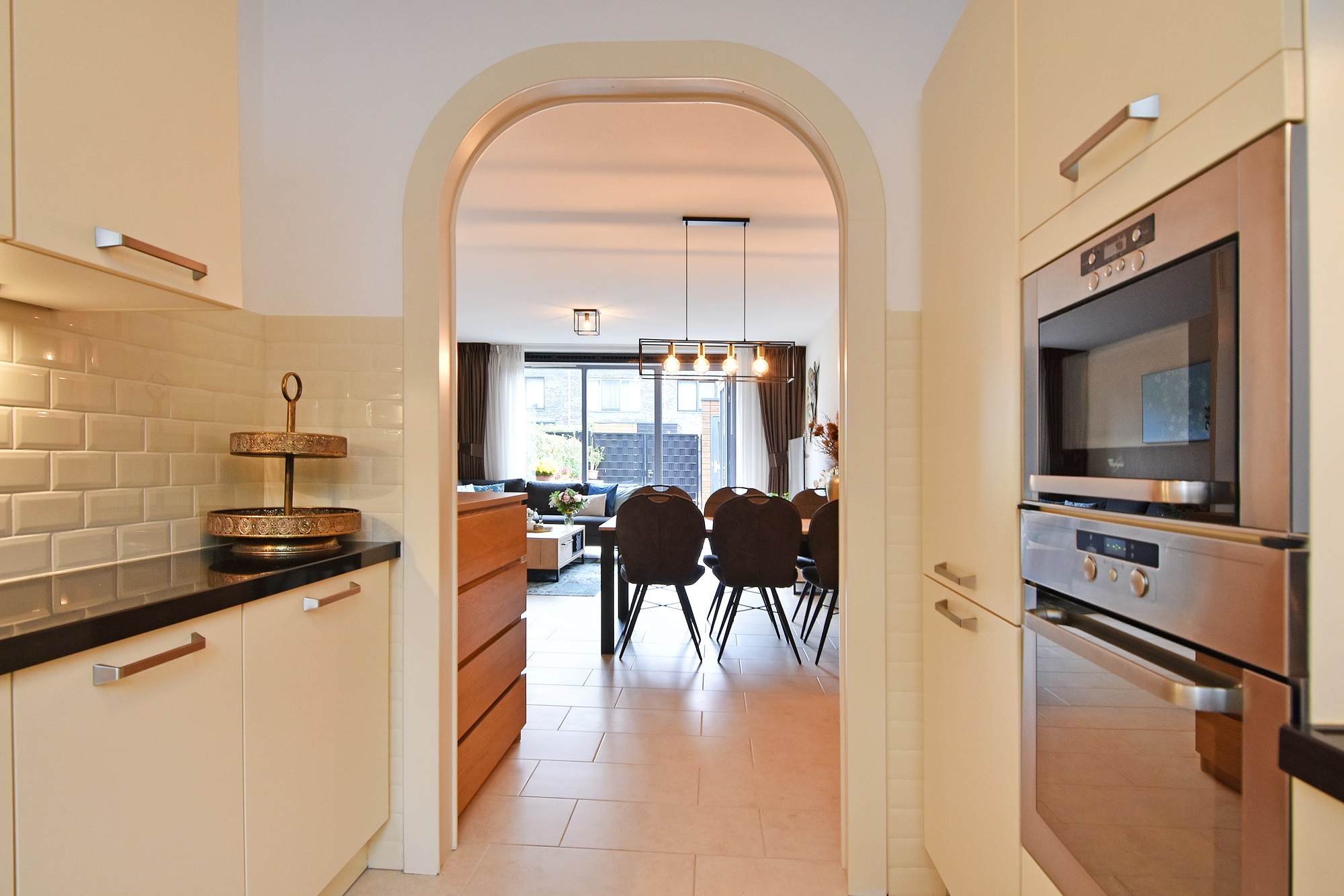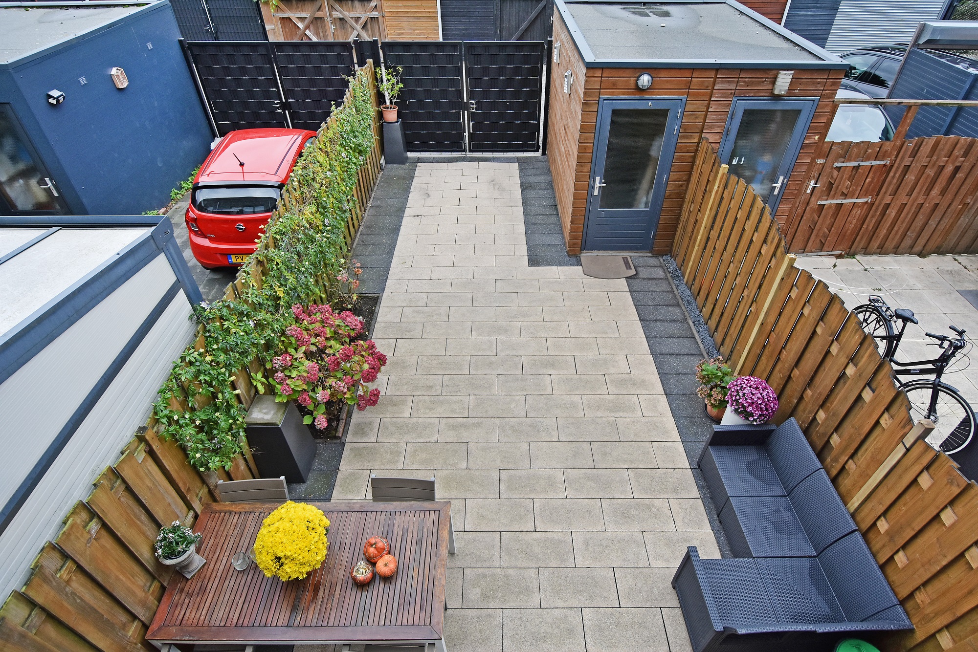 Geheel betegelde voortuin; entree woning; hal met meterkast; net toilet met fonteintje; ruime woonkamer met provisiekast; nette keuken met keukenblok met onder - en bovenkasten, natuurstenen aanrechtblad, gascomfort, afzuigkap, oven, magnetron, koelkast, vriezer en vaatwasser; geheel betegelde zonnige achtertuin met waterkraan en houten schuur met verlichting; parkeerplaats in de achtertuin bereikbaar via afgesloten terrein met elektrische poort met camerabewaking; trap in de hal naar de eerste etage; ruime overloop; nette badkamer met wandcloset, inloopdouche, ligbad/douche en handdoekdroger/designradiator; twee ruime slaapkamers; trap op de overloop naar de tweede etage; ruime overloop; slaapkamer aan de achterzijde; ruime slaapkamer aan de voorzijde; wasruimte met wasmachine-aansluiting en c.v.-ketel. (Volledige afmetingen op de laatste foto's!)