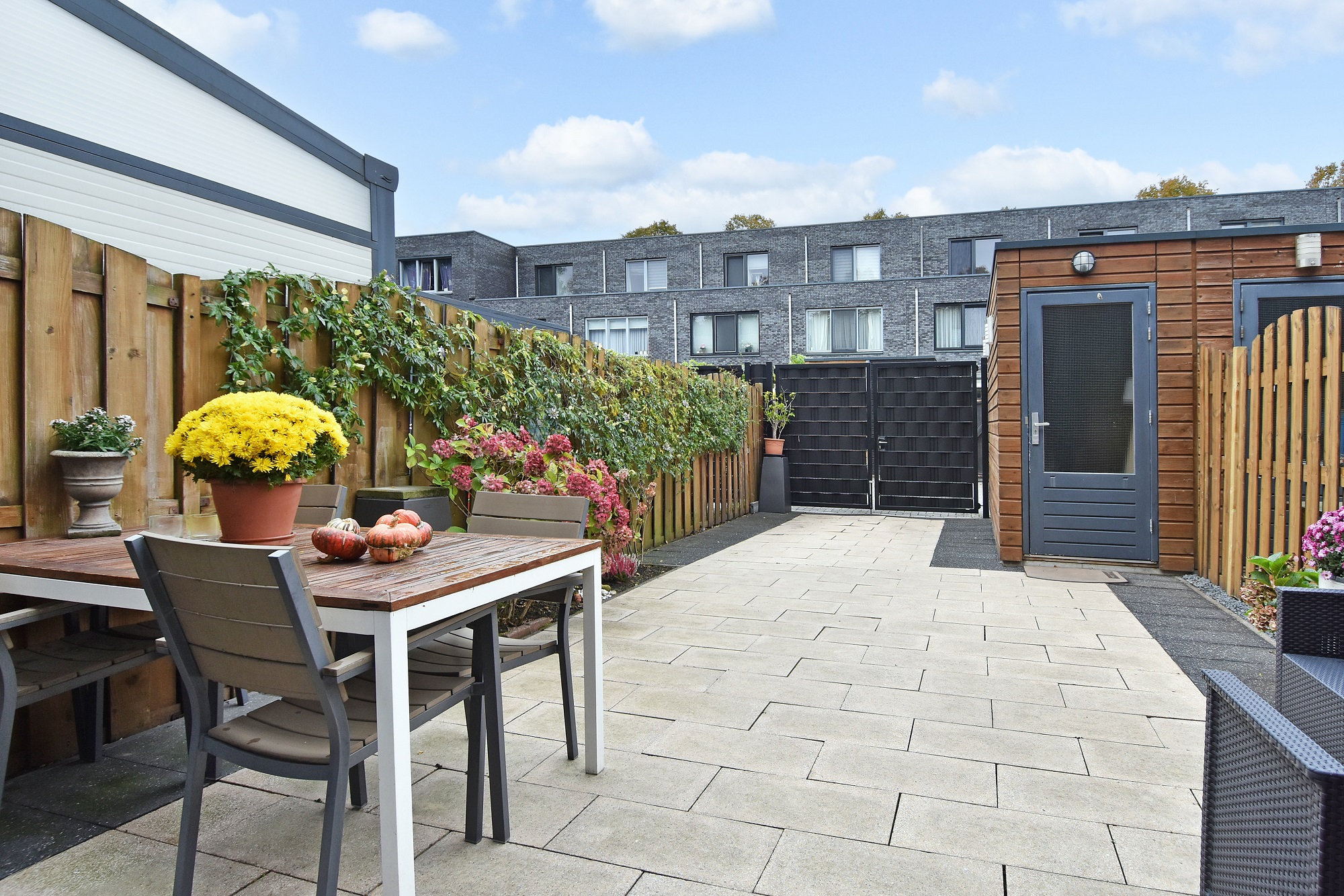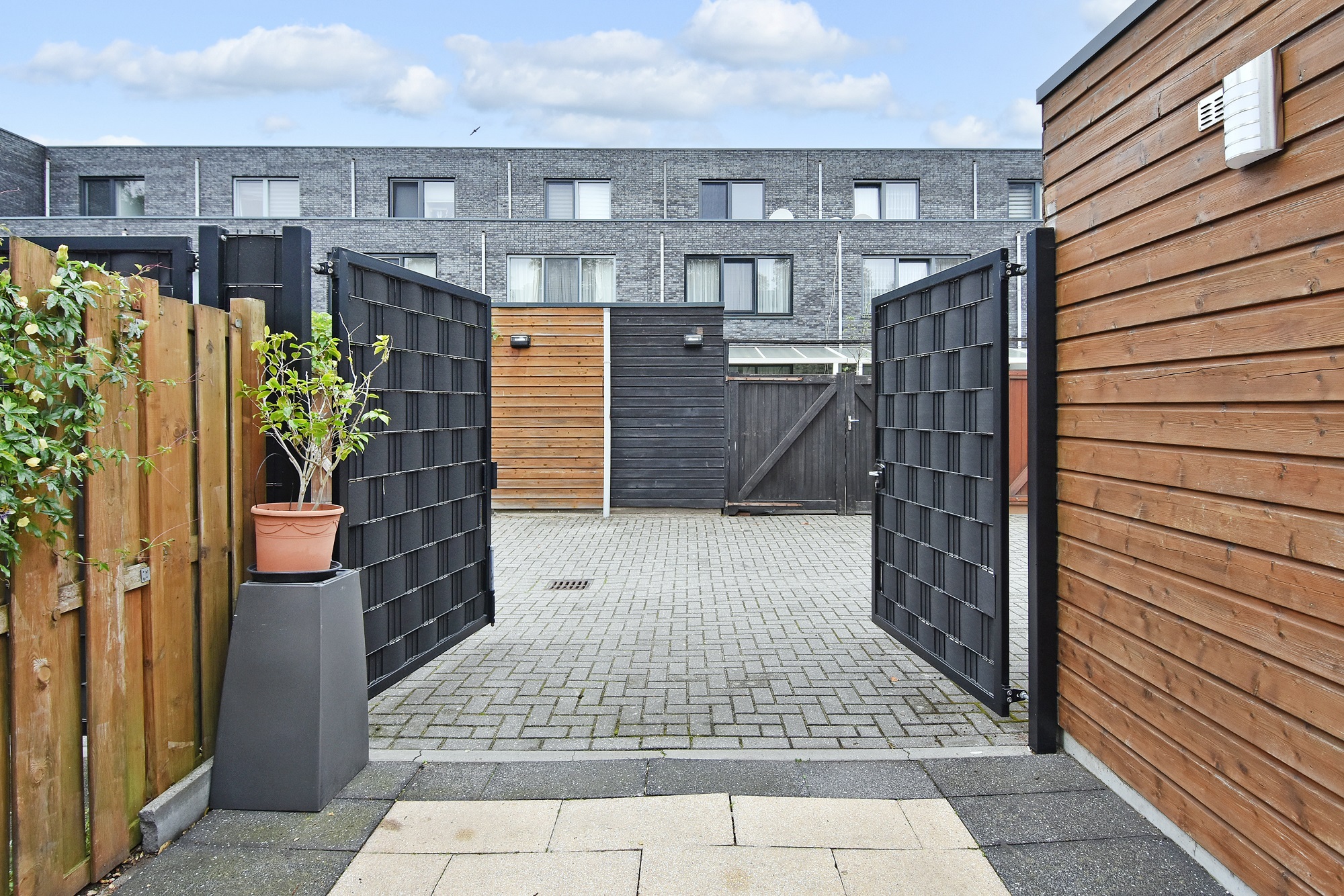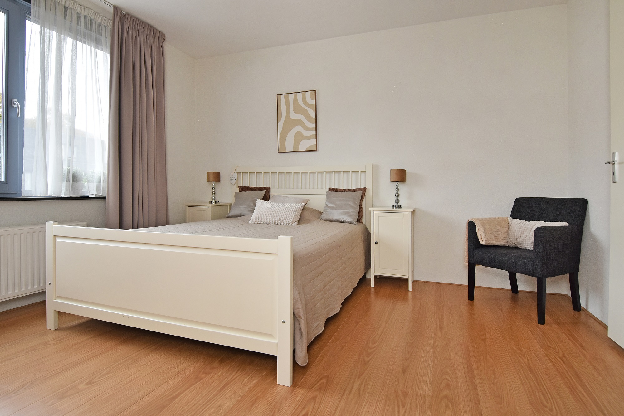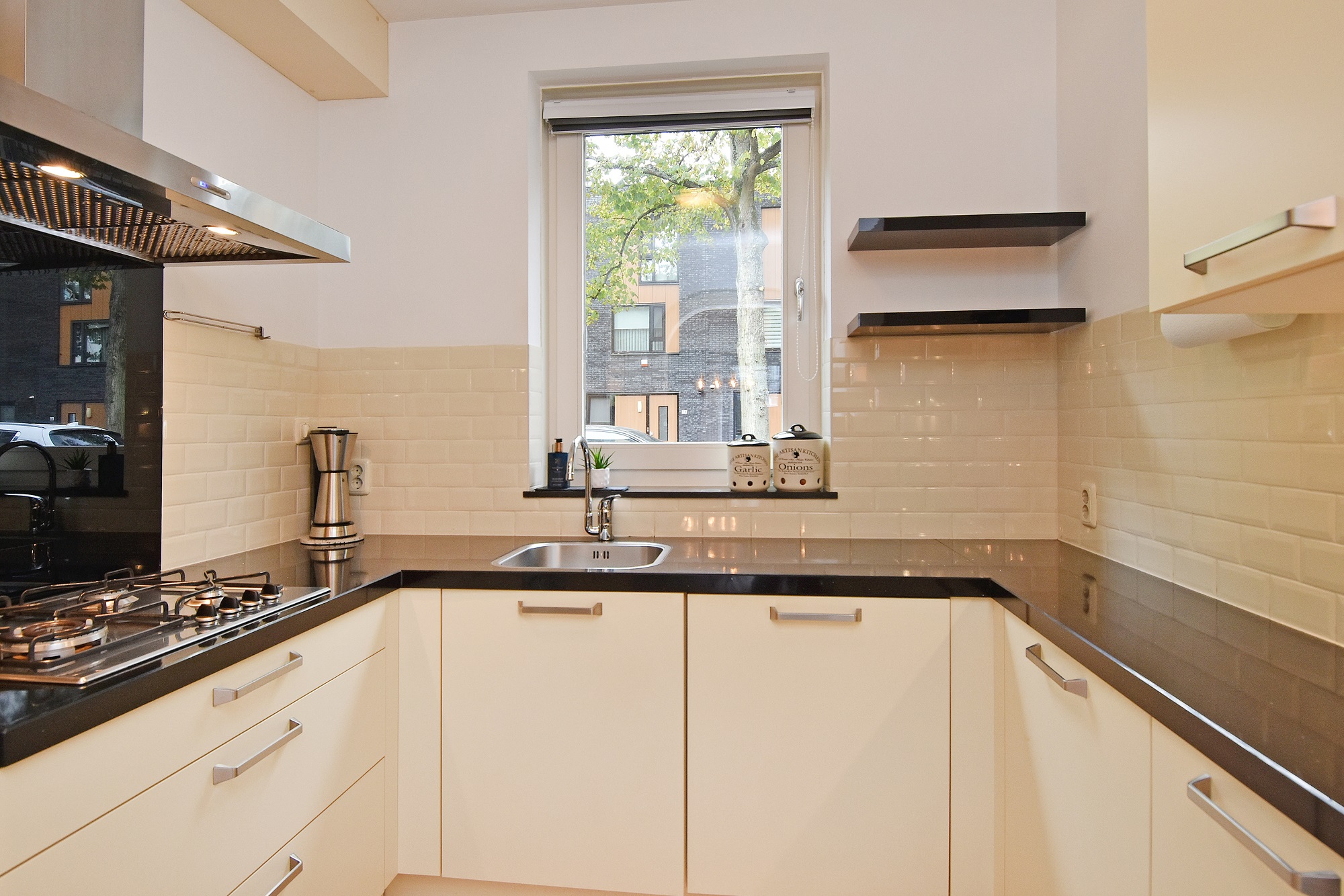 Geheel betegelde voortuin; entree woning; hal met meterkast; net toilet met fonteintje; ruime woonkamer met provisiekast; nette keuken met keukenblok met onder - en bovenkasten, natuurstenen aanrechtblad, gascomfort, afzuigkap, oven, magnetron, koelkast, vriezer en vaatwasser; geheel betegelde zonnige achtertuin met waterkraan en houten schuur met verlichting; parkeerplaats in de achtertuin bereikbaar via afgesloten terrein met elektrische poort met camerabewaking; trap in de hal naar de eerste etage; ruime overloop; nette badkamer met wandcloset, inloopdouche, ligbad/douche en handdoekdroger/designradiator; twee ruime slaapkamers; trap op de overloop naar de tweede etage; ruime overloop; slaapkamer aan de achterzijde; ruime slaapkamer aan de voorzijde; wasruimte met wasmachine-aansluiting en c.v.-ketel. (Volledige afmetingen op de laatste foto's!)